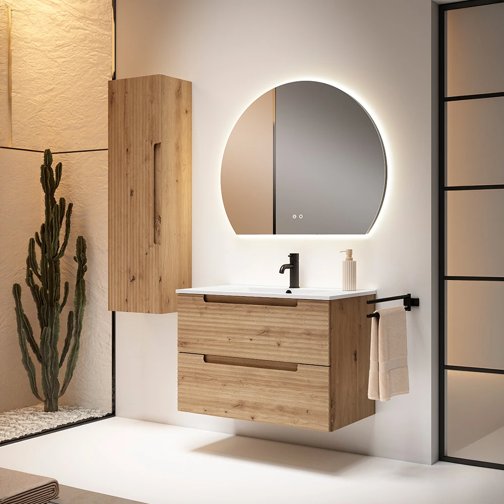 Disponible en medidas de 70, 80 y 110 cm, el espejo ECLIS se adapta a diferentes configuraciones de baño, desde espacios residenciales hasta proyectos profesionales y contract.