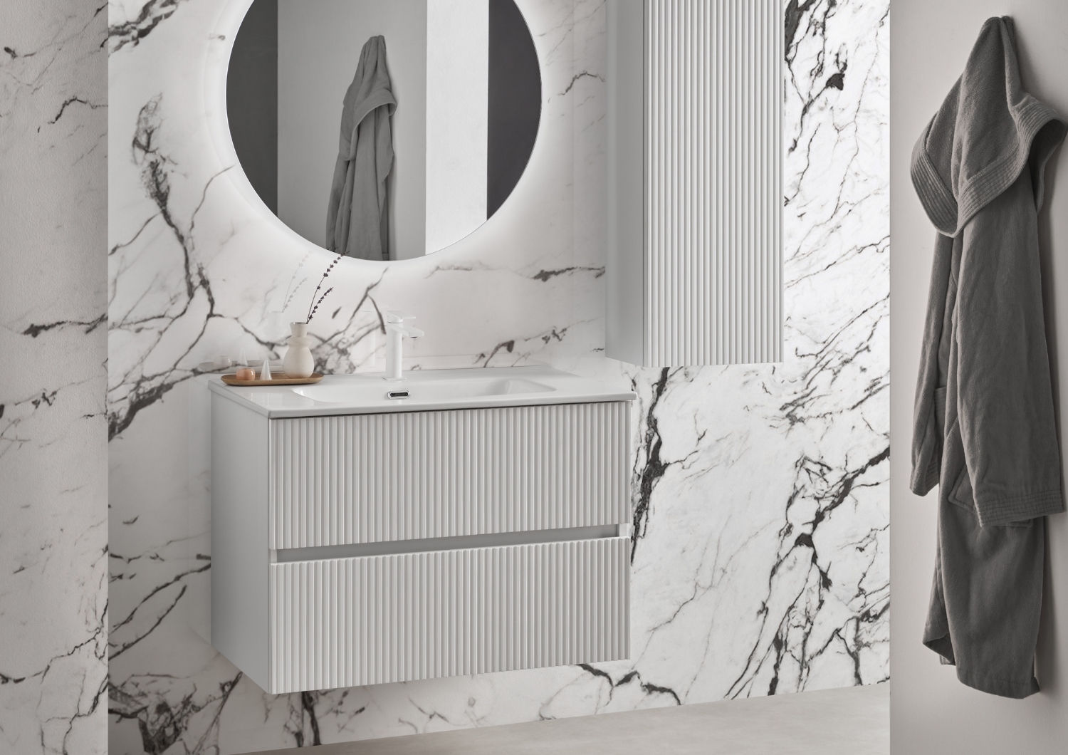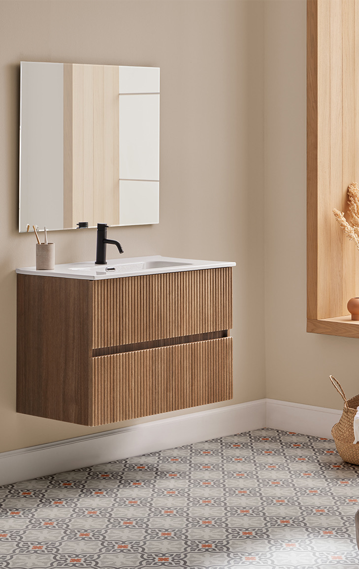 Conjunto mueble de baño con encimera cerámica ETNA de Sanchis