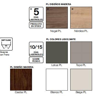 ENTREGA EN 12-18 DÍAS LABORABLES PARA LOS ACABADOS LOTUS, TOPO, CAOBA, BLANCO O BEIGE