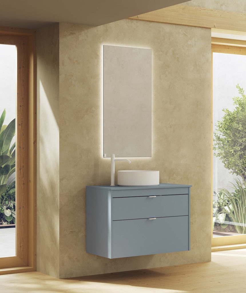 Opcional se puede elegir el conjunto premium compuesto por el mueble, la encimera y el espejo con luz Blaze.