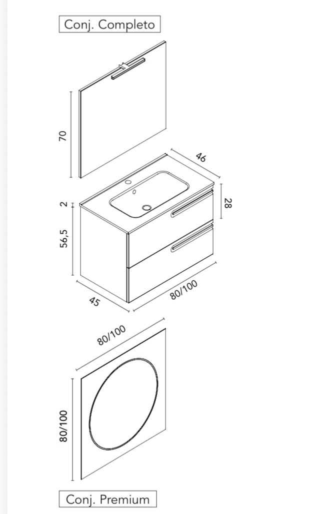 Se presenta como un conjunto de mueble de baño moderno de 2 cajones compuesto por el mueble y el lavabo Enzo o (si lo prefieres) puedes elegirlo con el espejo Murano .