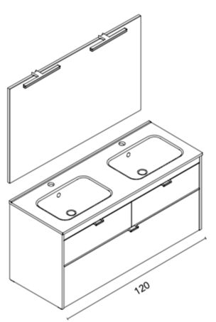 Se presenta como un conjunto de mueble de baño moderno de 3 cajones compuesto por el mueble y el lavabo de doble seno Enzo o (si lo prefieres) puedes elegirlo con el espejo Murano.