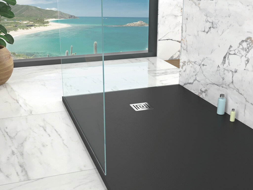 Plato de ducha ARDESIA PLUS de Gme es un plato de ducha extraplano fabricado en resina con una nueva fórmula de carga mineral y gel coat sanitario de última generación.
