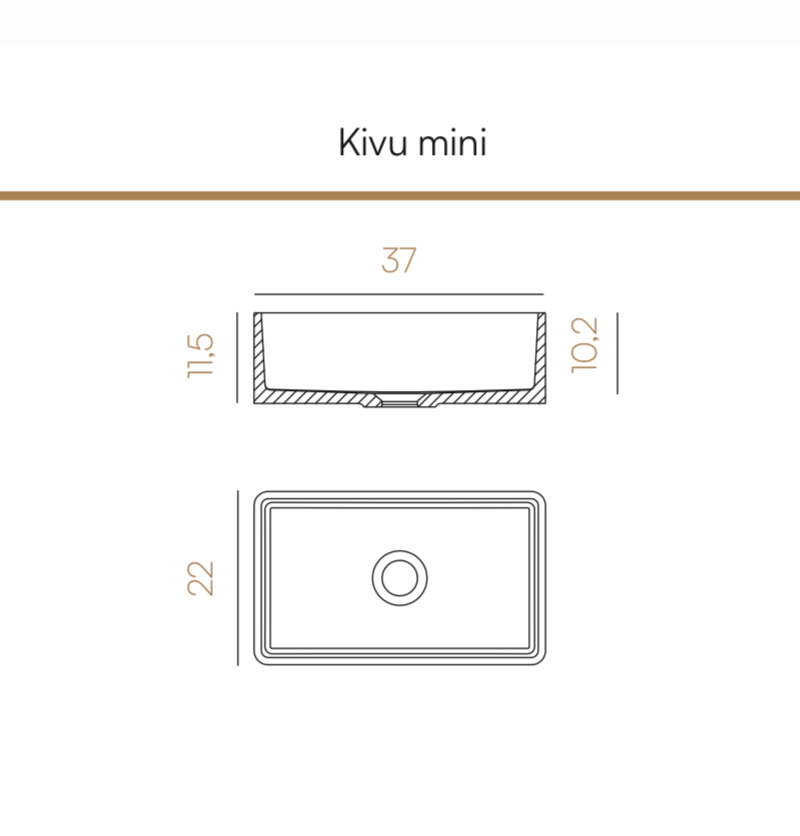 Renueva tu baño con el lavabo rectangular KIVU Mini, que destaca por su diseño contemporáneo y funcionalidad.
